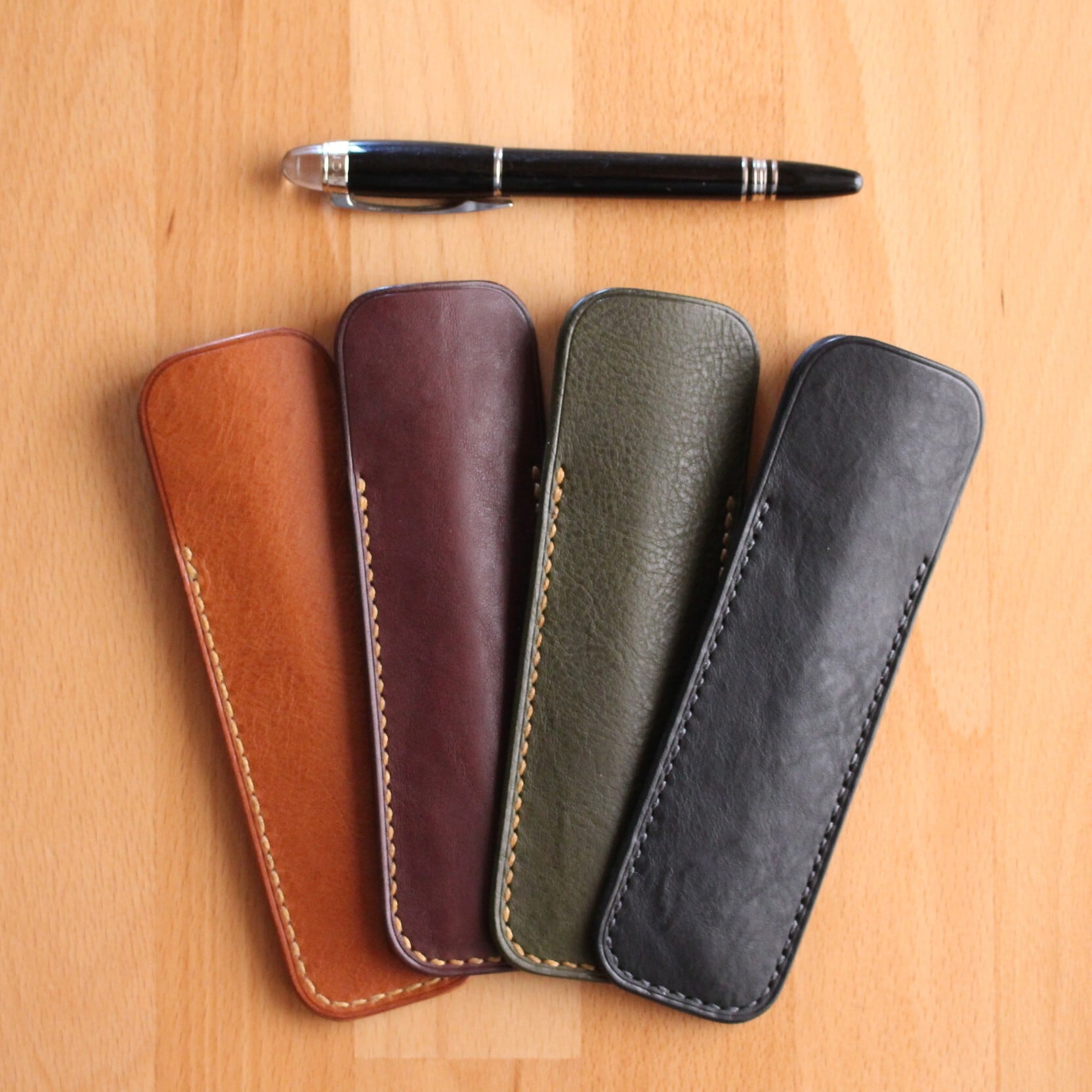 手縫いにて丁寧に仕上げたこのペンシースをおすすめします